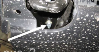 Подогреватель устанавливается на нижней поперечине рамки радиатора с левой стороны. Второе от колеса отверстие (показано стрелкой на рис 3) используется для крепления кронштейна. Используя две увеличенные шайбы 8, болт М8х25, пружинную шайбу и гайку М8 установите подогреватель, как показано на рис.2. Выберите такое положение подогревателя, чтобы он не касался коробки передач, поперечного стабилизатора, трубок гидравлики и зафиксируйте болтом с гайкой и шайбами. На рисунках показан монтаж на автомобиль с АКПП.С механической коробкой передач установка аналогична. |