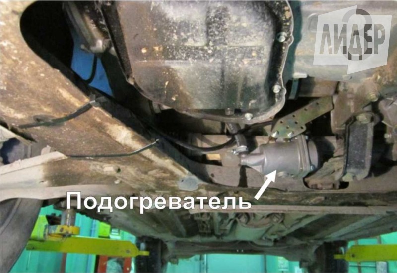 Подогреватель с кронштейном закрепить на болт щитка привода (рис. 2 и 4 стрелка Б). Положение подогревателя показано на рис. 3. |
