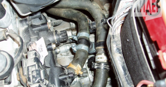 Разрезать шланг, подводящий ОЖ к отопителю салона, в соответствии с рис. 3. |
